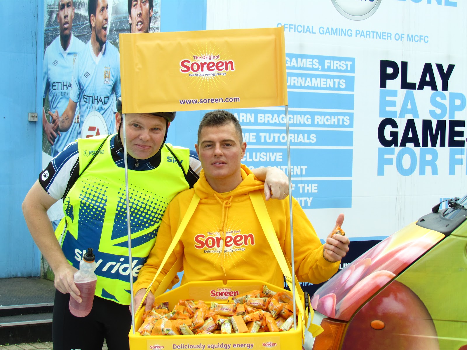 As most people already know Soreen is bursting with Deliciously Squidgy Energy; perfect for cyclists and those participating sporting activities that require a good source of slow release energy. Because of this we decided to attend this years Manchester Sky Ride and provide participants with some Squidgy Soreen Energy for their ride. During the course of the day we met tonnes of great people including celebrities such as Kelly Brook, public figures and participants who were raising money for charity including one of the Olympic Torch Runners.